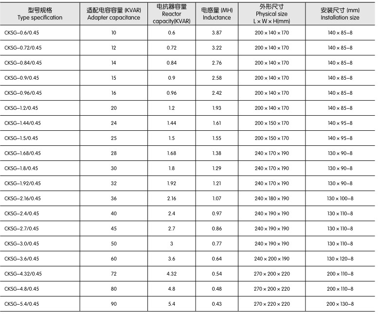 ● 低压三相串联电抗器CKSG 系列(6%) 参数表