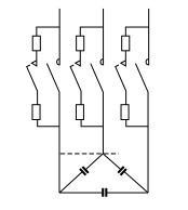 如图虚线以上为通断电容器电路的原理图 , 虚线以下为并联电容器组 , 串接电阻的提前接通触头为电阻切合电路 , 当接触器的电磁线圈通电时 , 电阻切合电路提前接通 , 电流经过电阻向电容器充电 , 电阻抑制了电容器合闸涌流 , 随后主触头闭合承载了电容电流。